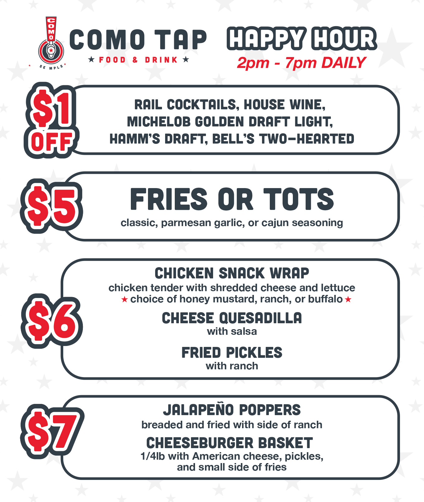 At Como Tap, the excitement doesn't stop as the night goes on, thanks to their vibrant late-night "Tappy" Hour from 9 PM to midnight. This enticing event features Hamm's beer for just $3.50, providing a perfect opportunity for patrons to unwind and enjoy the friendly, laid-back atmosphere. Whether you're wrapping up a long day or looking to kickstart your evening festivities, "Tappy" Hour at Como Tap offers an inviting setting for socializing, making new friends, and savoring the classic taste of Hamm's beer without breaking the bank.